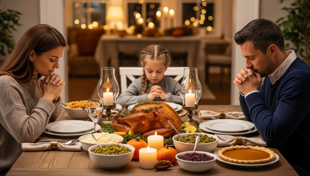 On this Thanksgiving Day, we come before You with grateful hearts. We thank You for the many blessings You have bestowed upon us—our families, our friends, our homes, and the food we are about to share. Thank You for Your unending love, mercy, and grace.